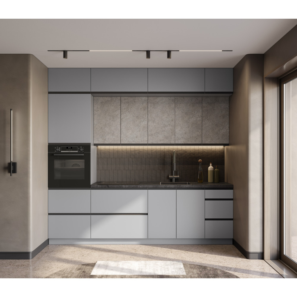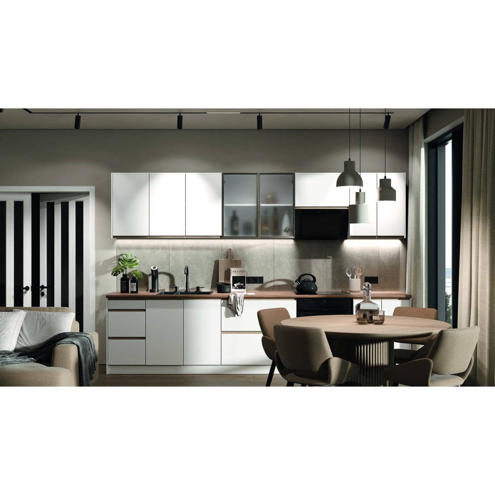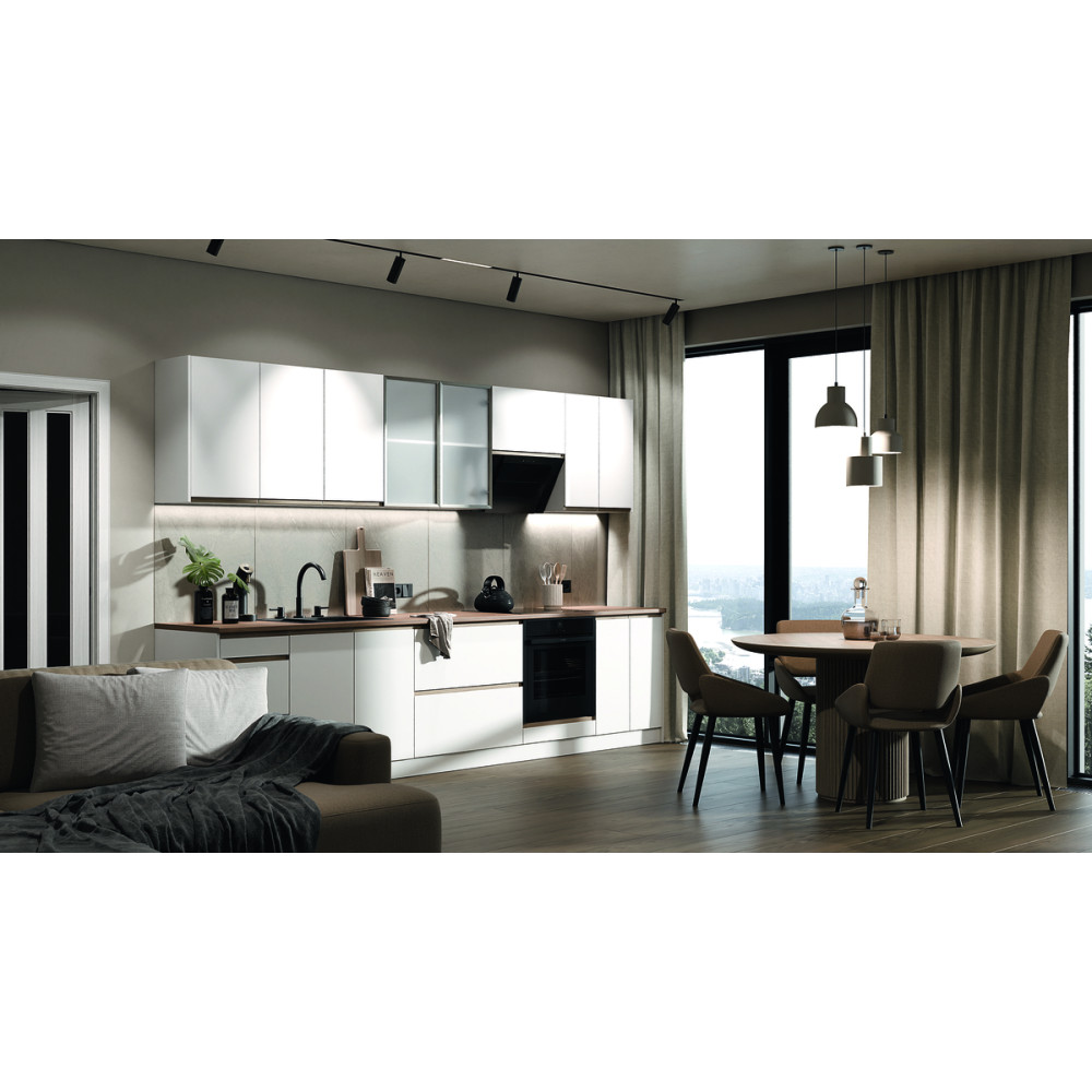 Модульная кухня Тина Мир мебели — это современное решение, которое можно собрать под любые размеры помещения. Комплект, представленный на фото, является примером возможной сборки. Вы можете изменить конфигурацию кухни, подобрать другие модули, цвета корпуса и фасадов под свой интерьер. Все элементы продаются отдельно, что позволяет создать идеальную кухню под индивидуальные нужды.