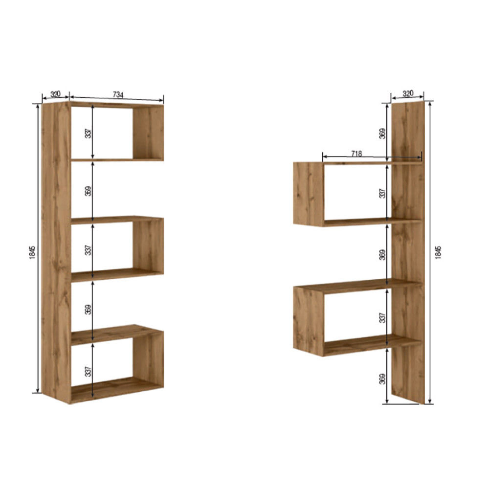 Состоит из 2 частей. Пиксель 1 стеллаж 1 - 1845х320х734 мм. Пиксель 1 стеллаж 2 - 1845х320х718 мм