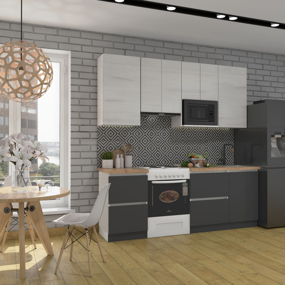 Корпус: Белый гладкий, Фасады: Ясень серфсайд чистый, Серый графит