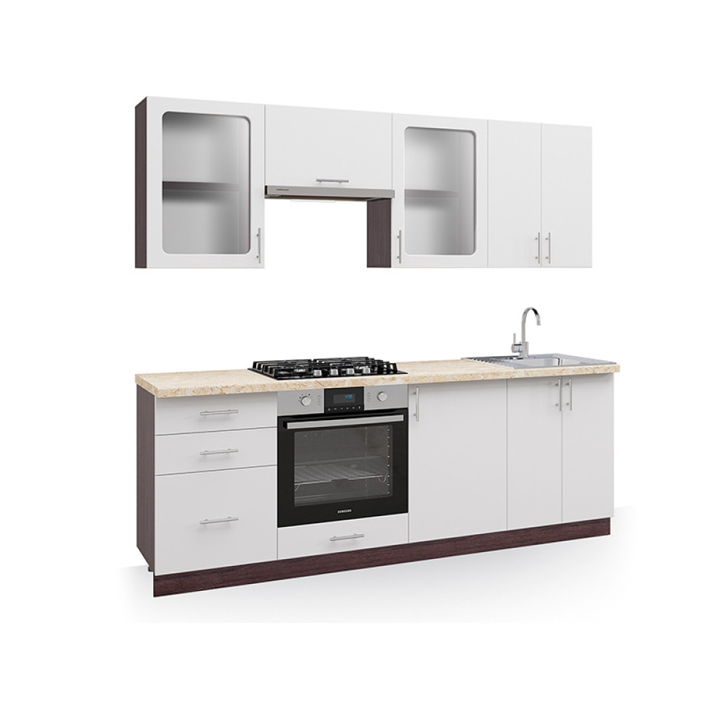 Модульная кухня Фіоре / Fiore Киевский Стандарт — это современное решение, которое можно собрать под любые размеры помещения. Комплект, представленный на фото, является примером возможной сборки. Вы можете изменить конфигурацию кухни, подобрать другие модули, цвета корпуса и фасадов под свой интерьер. Все элементы продаются отдельно, что позволяет создать идеальную кухню под индивидуальные нужды.